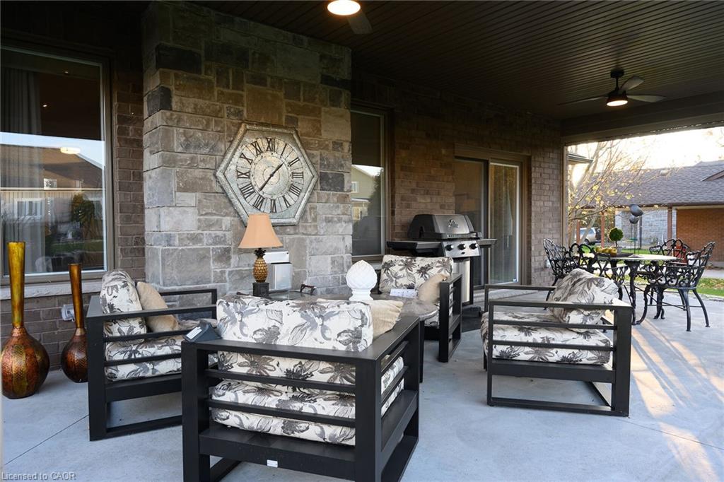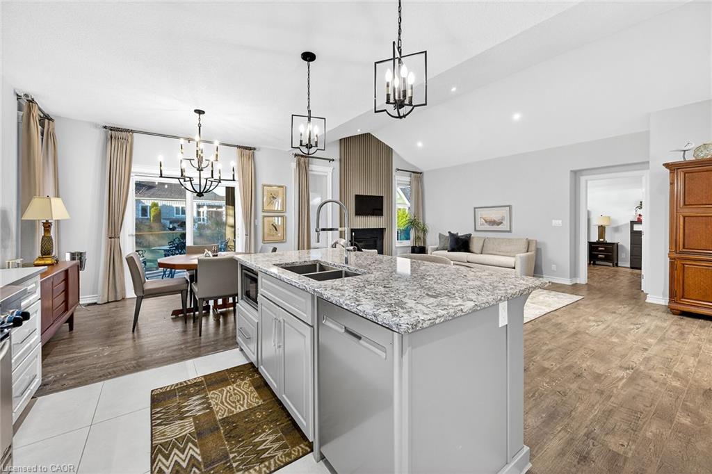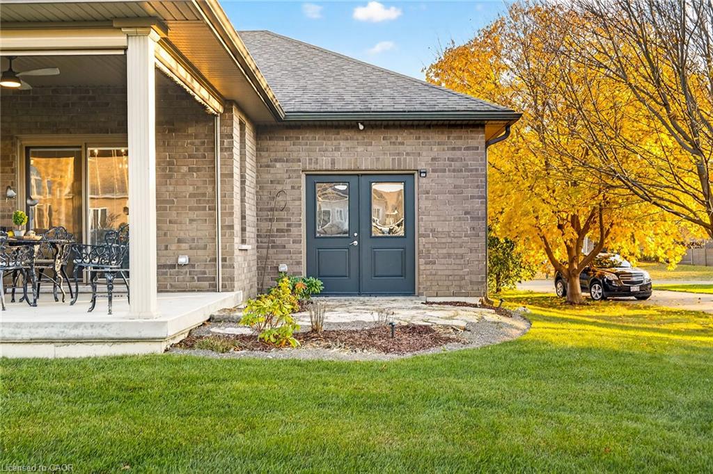 Welcome to this exquisite bungalow in the heart of Port Dover, where timeless craftsmanship, elegant design and relaxed lakeside living come together in a truly inviting home. Offering three bedrooms and an open-concept layout, the residence is finished with high-end details throughout and sits within walking distance of the golf course as well as luxury dining overlooking the lake. The gourmet kitchen serves as the centerpiece of the home, blending style and efficiency with quality appliances, generous workspace and a walk-in pantry tucked beside the mudroom and laundry area for everyday convenience. The kitchen opens seamlessly into the comfortable great room, where a beautifully designed feature wall with tv niche and a cozy natural gas fireplace create a warm gathering space perfectly suited for family living and entertaining. The primary suite is designed as a private retreat, offering a luxurious atmosphere and well-appointed finishes with a stunning ensuite washroom that features a breathtaking shower. The two additional bedrooms provide flexibility for guests, family or a home office, depending on your needs. Outdoor living is effortlessly integrated into the home's design. The covered rear porch features motorized screens, natural gas lines for barbecuing and outdoor heating, thoughtfully placed lighting, overhead fans and countless details that allow you to enjoy the space from early spring through late fall. With direct access from the three-car garage--complete with doors opening into the backyard--the home offers exceptional convenience for daily living and outdoor entertaining. A large unfinished basement awaits your future vision, ready to become additional living space, recreation area, workshop or storage depending on your plans. This is a rare opportunity to own a beautifully crafted bungalow that brings together refined finishes, exceptional comfort and the best of Port Dover's lakeside lifestyle.