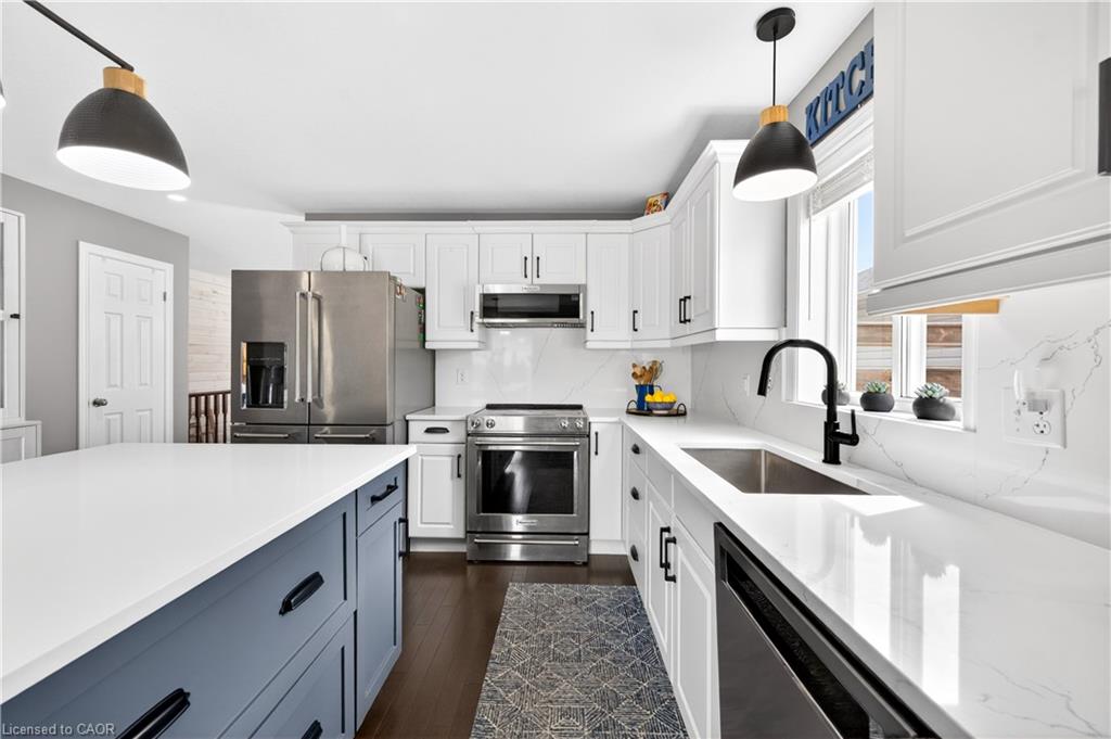 Welcome to this exceptional bungalow offering nearly 3,000 square feet of beautifully finished living space across the main level and basement. Completely finished from top to bottom, inside and out, this home is truly move-in ready and perfect for families of all sizes. The main floor showcases spacious, thoughtfully designed living areas that strike the perfect balance between open-concept flow and defined spaces for everyday comfort. The layout is both functional and inviting, ideal for entertaining or relaxed family living. At the heart of the home, the stunning kitchen features elegant stone countertops and backsplash, complemented by an island that serves as a natural gathering space. Generous bedroom sizes and a seamless layout make main-floor living both practical and effortless. The fully finished basement extends the home's versatility, offering three additional bedrooms, a full bathroom, a spacious living area, a dedicated gym space, and a second laundry setup. Whether you're accommodating a growing family, multi-generational living, teenagers seeking their own space, or extended guests, this lower level adapts with ease. The triple-car garage has been thoughtfully modified to include a convenient mudroom--perfect for the storage needs of a busy family--and includes direct man-door access to the backyard. Step outside to a private, fully fenced backyard designed for both relaxation and entertaining. Enjoy a large concrete patio, dog gate and Astroturf, gazebo, fire pit, and a deck with base for an above-ground pool--creating the perfect setting for summer living. Ideally located within walking distance to Hagersville Secondary School and set in a desirable, family-friendly neighbourhood, this home offers the perfect blend of small-town charm and everyday convenience. Nearly 3,000 square feet of finished living space. Completely move-in ready. A bungalow that delivers space, flexibility, and lasting comfort. Are you ready to make your move?