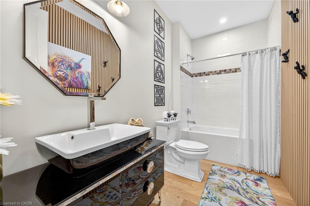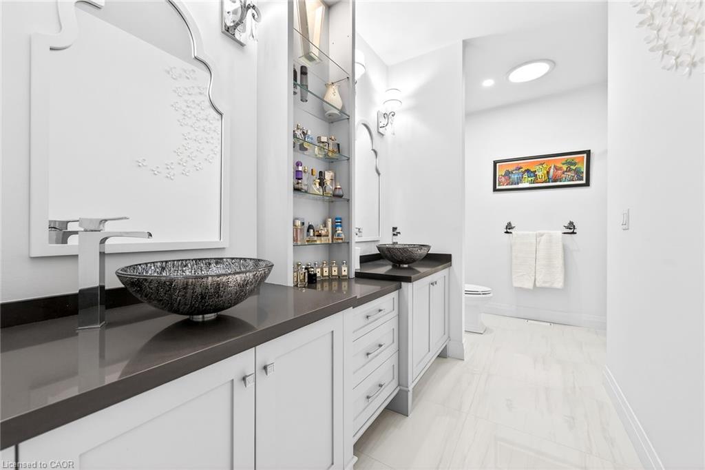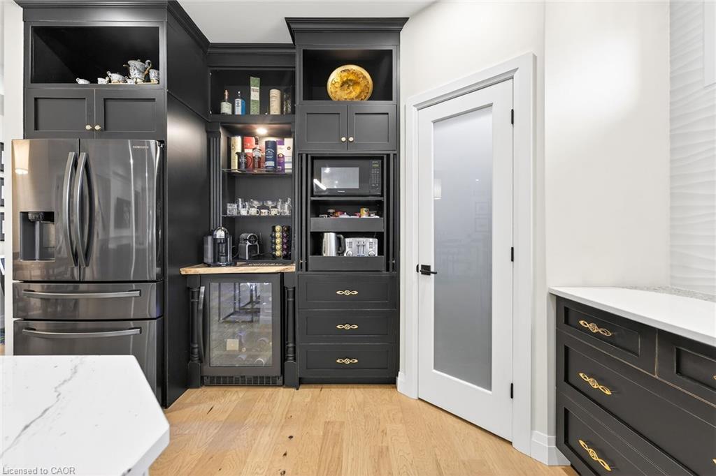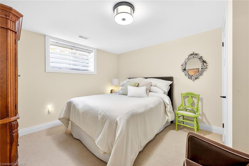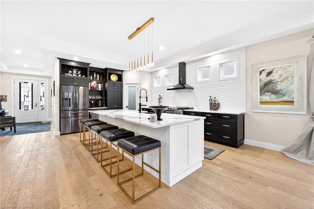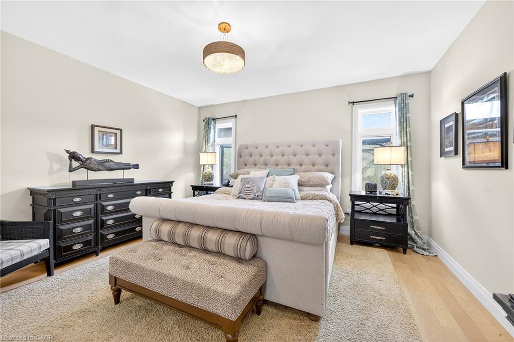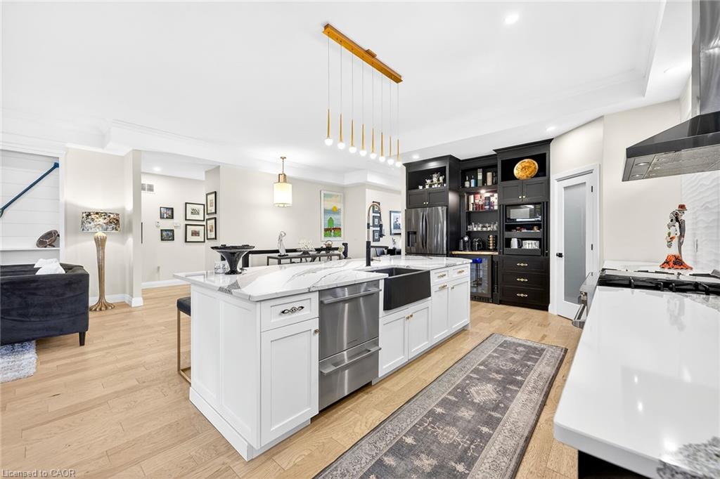 50 Bluenose is a stunning testament to pride of ownership and exemplary quality in home living. Custom built in 2019 on a spacious 65'x131' lot, this exquisite bungalow offers 3,400 sqft of thoughtfully designed living space, featuring modern aesthetics and luxurious finishes. As you step through the front door, you'll be greeted by soaring 10' ceilings and elegant 8' interior doors that create a grand ambiance. The standout kitchen boasts an oversized Cambria countertop island, complemented by striking black distressed cabinetry with gold accents. The open-concept living and dining area is enhanced by three French doors that lead to a generous 24'x14' covered and screened porch, perfectly blending indoor and outdoor spaces. The spacious master bedroom includes barn doors that open to a walk-in closet and a lavish 4-piece ensuite. An additional main floor bedroom serves beautifully as an office or den. The fully finished basement offers an impressive wine tasting room and cellar, showcases glass doors and cork walls and a cozy secondary living room features an electric fireplace, providing a warm and inviting atmosphere. This level also includes two large additional bedrooms, a vibrant 3-piece bathroom, a home gym, and ample seasonal storage. Nestled in one of Port Dover's most sought-after neighborhoods, the grandeur of 50 Bluenose is truly captivating. When will you make the move?